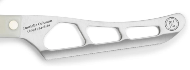 This well-rounded knife corners the market on multitasking. Designed for cutting hard to soft cheeses. Also try it on vegetables and fruits, like potatoes and tomatoes. Perforations keep dense foods from sticking. A must-have for anyone who likes to entertain. Makes the perfect hostess gift. 5-3/8" Micro Double-D®-edge blade.